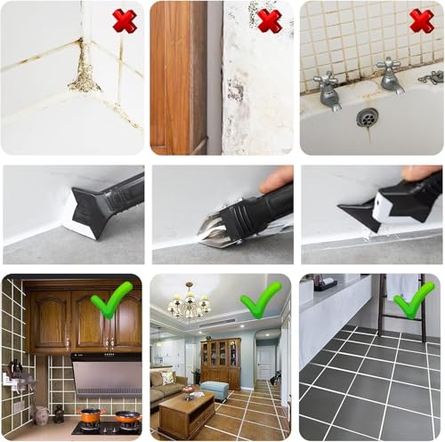 - 【Multifunctional Caulking Tools】The 5 in 1 upgraded caulking remover tools can not only help you repair the gap and clean the residual glue, but also help you fill the caulk with glue. It will improve the agglutinating quality and the aesthetic sense of surface