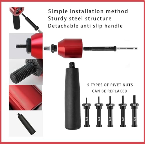 - [High Performance & Strength]: Delivers a remarkable 500N riveting force and supports threaded inserts in sizes M3, M4, M5, M6, and M8 for strong and reliable fastening