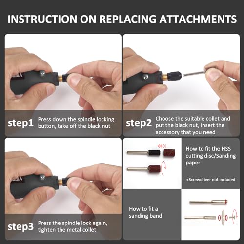 - DIVERSITY ROTARY TOOL ACCESSORIES – With 42pcs accessories kit including 20pcs sanding bands that can be used to do various types of home projects and crafting jobs such as sanding, grinding, carving, polishing and more.