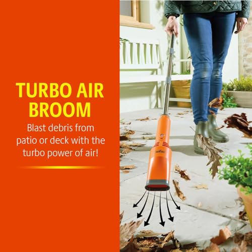 - Powerful airflow – This compact yet high-performance broom uses concentrated, pressurised air to shift garden mess in seconds. Perfect for autumn leaves, twigs, dirt, grass trimmings and light rubbish on smooth or textured surfaces