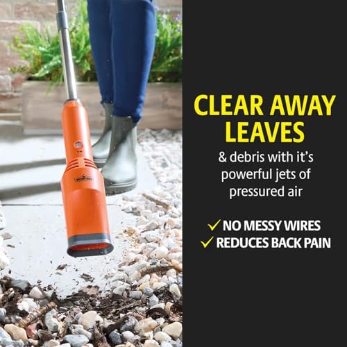 - Cordless convenience – Blast away leaves and debris with this cordless air broom, designed for hassle-free tidying on patios, decking, driveways and balconies. No cords, hoses or heavy tools – just pressurised power wherever you need it outdoors