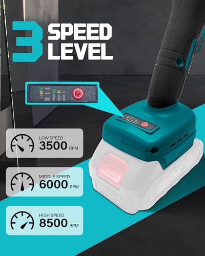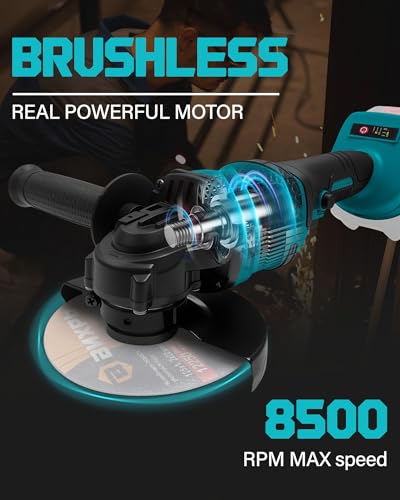 - 【Strong Brushless Motor & 3 Variable Speed】 Cordless grinder equipped with an upgraded brushless motor, featuring 3 adjustable speed settings up to 8500 RPM, delivers high performance with less power loss, longer lifespan, and quieter operation.