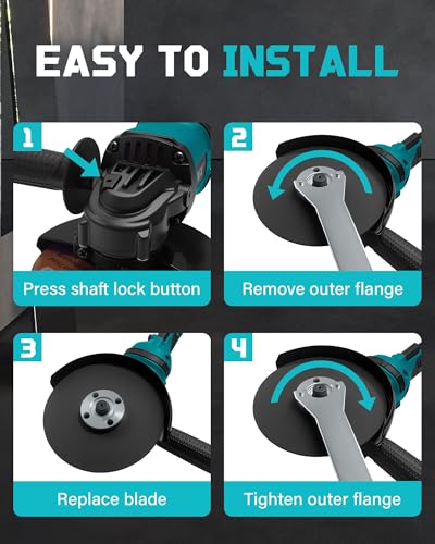 - 【Safe & Fast Change】 Our electrical grinding tools are compatible with 125mm max blades, slices and grinding discs. To replace the grinding wheel, simply hold down the spindle lock and use the included wrench for quick changes.