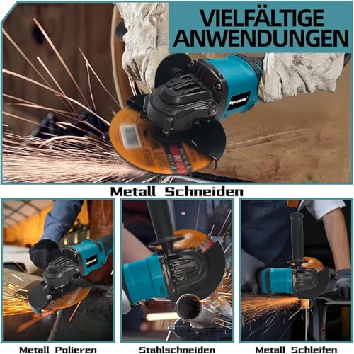 - 【Ergonomic design & adjustable protection】: Our electrical angle grinder has a non-slip additional handle with 2 positions for stability and hold, perfect for left and right-handed. The ergonomic handle improves comfort and control, while the metal protection cover protects you from sparking and keeps it safe when cutting and grinding. This grinding stuff is ideal for long projects and detail work and offers the support and control that you need for efficient tasks