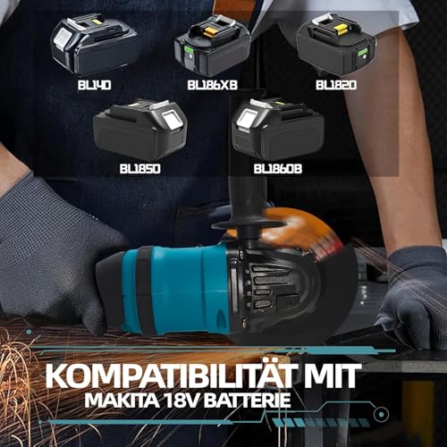 - 【Compatible with Makita battery】: This wireless angle grinder is compatible with Makita battery 18V, such as BL1830, BL1830B, BL1840, BL1840B, BL1850, BL1850B, BL1860B. (Note: Cabbage and saw blade do not contain the scope of delivery)