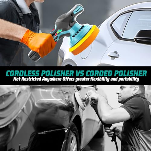 - 【Newly upgraded battery】Equipped with 2pcs3.0Ah upgraded replaceable batteries, it can operate for up to 5-6 hours and is highly efficient and durable, making it the perfect solution for your long-term polishing work. A battery powered polishing machine equipped with a fast charger, free from the constraints of wires, can polish your car anytime and anywhere.
