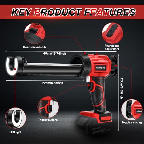 - 【Convenient & Efficient Operation】:Using the cordless caulking gun is simple—just load the caulk, pull the trigger, and start working. Its 360-degree rotating barrel enables gluing without dead corners and allows for easy handling of hard-to-reach edges. This electric caulking gun offers higher efficiency, ensuring a more uniform glue line, making it well-suited for large volume work.