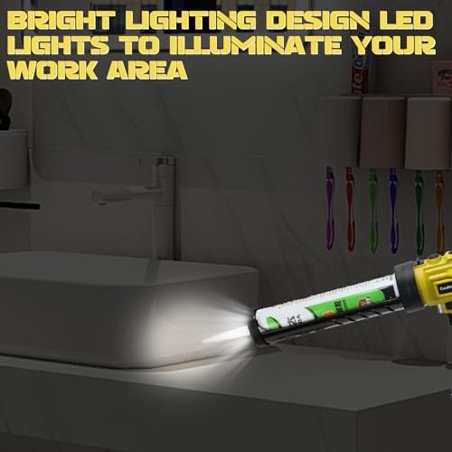 - 【LED LIGHT DESIGN】The caulking gun with LED light design allows you to work efficiently in dark environments. The LED light at the end of the barrel is a great feature of the caulking gun,allowing you to accurately caulk and deal with all kinds of defects in attics,garages and other dark environments
