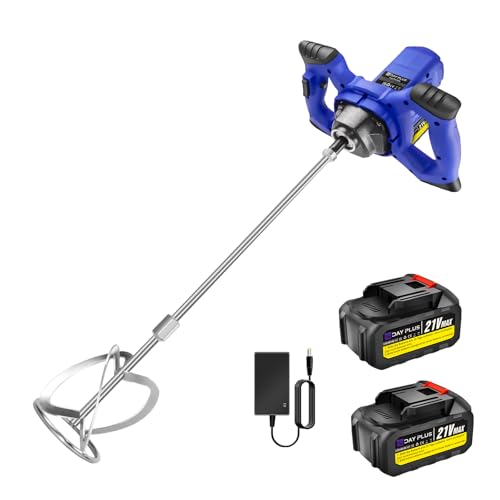 - 🔷Dual-Battery Long Run: This cordless concrete mixer comes with 2PCS 1500mAh rechargeable batteries, each lasts for 20 minutes after fully charged. Using the 2 batteries alternately does not require frequent charging, meeting the requirements for continuous operation.