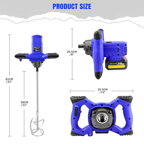 - 【Powerful battery life with dual batteries】 This cordless mixer is equipped with two 1500mAh high-capacity lithium batteries, providing uninterrupted power supply for long periods of mixing work. It is more efficient and hassle-free. It is versatile and can be used for construction and renovation, as well as home DIY projects. It is your reliable mixing assistant!
