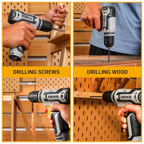 - Multi-function Cordless Drill:The 12V Cordless Drill with LED Light -Get the job done with ease and precision. Suitable for drilling in wood and plastic, and also for tightening/loosening screws. Built-in LED light for improved visibility in dark areas.This cordless drill is perfect for DIY projects and home maintenance.