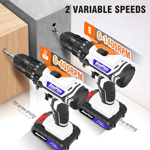 • 【Adjustable Speed】This cordless drill and driver has two transmission devices, 0-400 RPM and 0-1400 RPM, providing two speed performance options. Different devices can be selected based on different performance. The 25+1 torque setting allows you to perform precise operations, paired with various built-in batch heads to achieve a three in one drilling / twisting / pulling multifunctional cordless drill. With a strong combination, it brings you higher work efficiency!