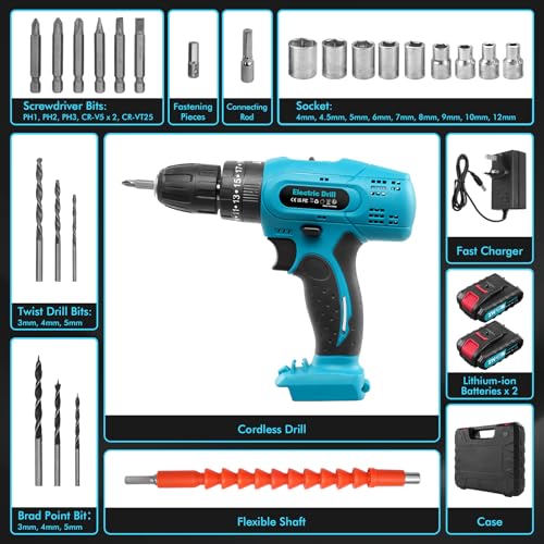 • 【Long-Lasting Power】Equipped with a robust 21V 2000mAh lithium-ion battery, this cordless drill offers superior performance and endurance. The higher capacity indicator ensures you can complete even the most demanding projects without interruption. With a fast 2.0A charger that fully charges in just 1-2 hours, you'll always be ready for action.