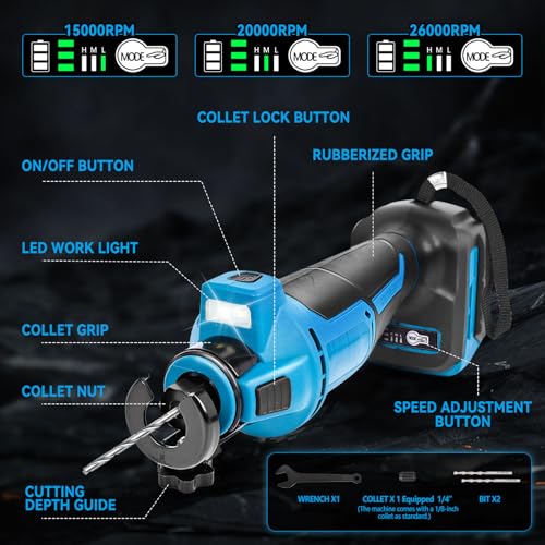 - Three-speed Adjustment: The cordless drywall cutter features three speeds for high-quality cutting performance