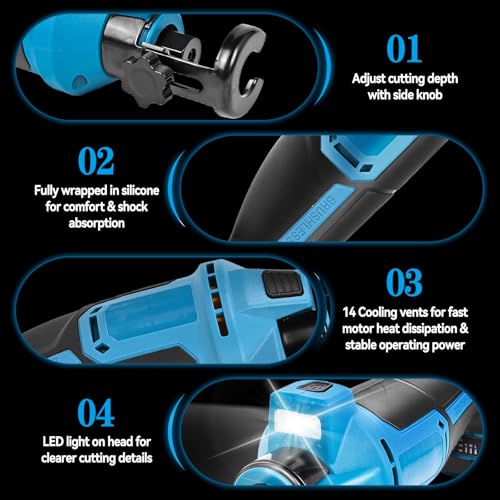 • High Efficiency Motor: 26000RPM Brushless motor ensures fast cutting in drywall, acoustic ceiling panels, plywood, etc. The kit features a 3-Step adjustable cutting depth, allowing you to set the exact depth needed for your project. This versatility ensures that you can handle a variety of tasks with precision and control, whether you are cutting through single or multiple layers of drywall.