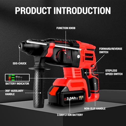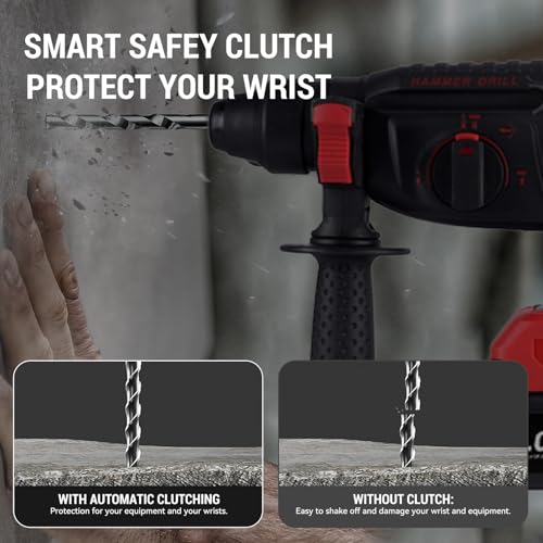 - HAMMER & DRILL FEATURES – Use the grey dual mode switch to choose between drill only or hammer drilling mode. The cordless hammer drill makes it easier for you, whether you remove tiles or tear off masonry. Suitable for wood, masonry, concrete, brick and metal.