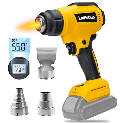 Cordless Heat Gun for De-Walt 20v Battery, 2-Temp Setting 86℉-1022℉(30°C-550°C) Hot Air Gun, 300W Fast Heating with 3 Nozzles for Welding, Shrink Tubing(No Battery)