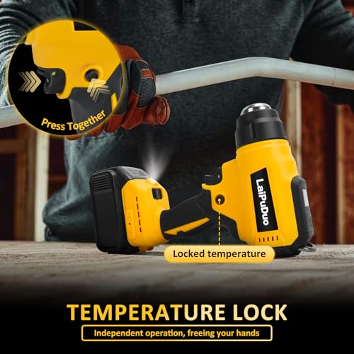 • High and low temperature adjustment:Cordless heat gun has high and low speed design to meet different working needs, 1 speed:30-400°C(86-752°F),2 speed:30-550°C(86-1022°F), it is the ideal tool to complete various DIY projects and special tasks