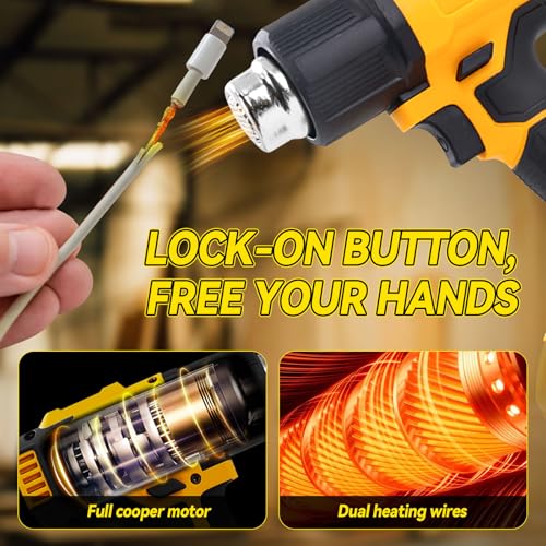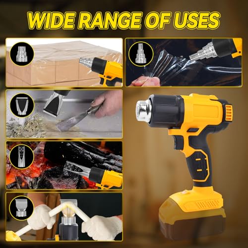 - Cordless Convenience:The best part of this portable heat gun is its cordless feature, which makes it easy to use even outdoors.No power supply is required, eliminating the need for cables and improving ease of use and flexibility. Compatible with Dewalt 20 V lithium-ion batteries: DCB181, DCB200, DCB201, DCB204, DCB205, DCB240, DCBP034.(Please note: No Battery)