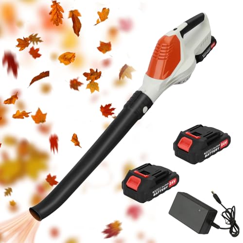 Cordless Leaf Blower, 24V Battery Leaf Blower with 2 Batteries & Charger, Lightweight Electric Blower for Lawn Care, Garden, Patio, Driveway & Car Cleaning