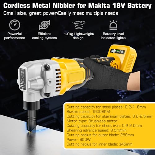 - Cordless metal punching and shearing machine: Compatible with Makita 18V MAX battery (battery not included, charger not included)