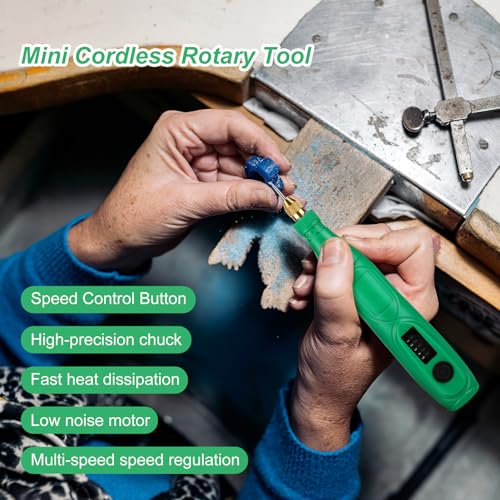 - 🔨【5 Adjustable Speeds】Mini cordless rotary tool can easily adjust 5 variable speeds from 3600-18000rpm to meet different situations' power needs.This rotary tool is powerful,little to no experience is necessary to quickly get started.
