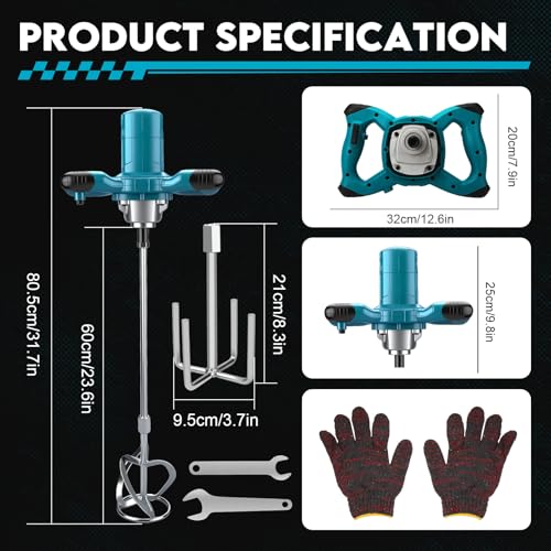 - 【Wide Applications】The powerful performance and portable design of this electric mixer is ideal for use with materials such as cement, concrete, grout, mud, paint, mortar, plaster, putty, meat filling and other materials. Improve work efficiency.