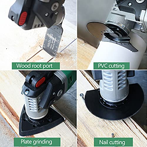 - ✅ Universal Interface: Our oscillating tool has excellent compatibility with blades. As long as the blades can be inserted through the six short tiny nails, the blades are suitable for this oscillating tool. Blades meet all requirements for cutting, scraping or grinding for do-it-yourselfers.