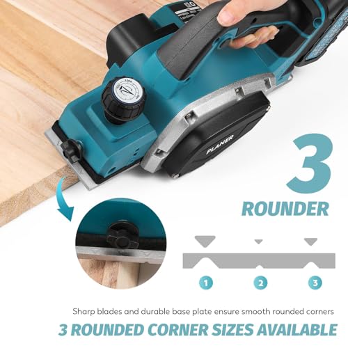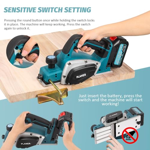 - Flexible Depth Adjustment: This cordless hand planer has an adjustable knob that allows you to freely adjust the depth within the range of 0-2mm. Suitable for various types of wood materials and different work requirements, it is an ideal planing tool for DIY projects on various furniture or other woodworking crafts to achieve precise planing work