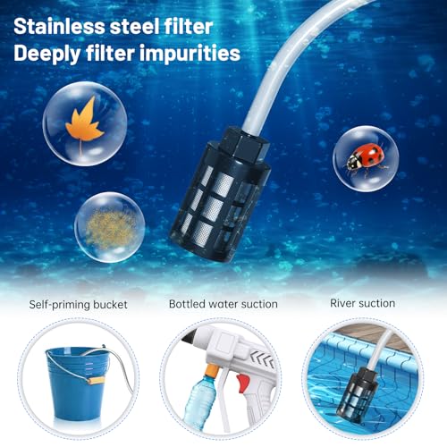 - 💧【Draw Water from Anywhere】 The portable high-pressure washer features a cordless lightweight and compact design and a 16ft hose with a filter basket that can effectively filter impurities, particles, waste leaves, or silt, supports drawing water easily from a bucket, pool, river or any water source but better protect our cordless pressure washer machine, making it an ideal companion for outdoor cleaning tasks like bikes and motorcycles.