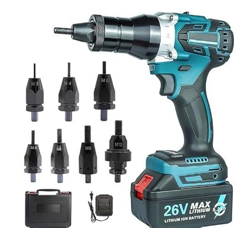 - Rechargeable Rivet Nut Gun Set: There is no cable limitation, just plug in the battery, and you can use it anywhere; more convenient than ordinary plug-in rivet guns. Even in rooms or yards without electricity. It helps you do your job flawlessly