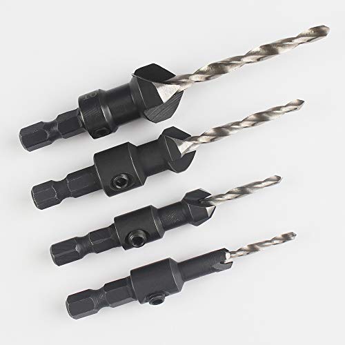 • COUNTERSINK DRILL BIT SET: The countersink drill bits for wood set includes 4 pcs carpentry reamer in 4 different size ( 6mm/ 10mm/ 13mm/ 16mm) and 1 pcs hex key .With numbers on the drill bits for easy recognition can meet your different needs.