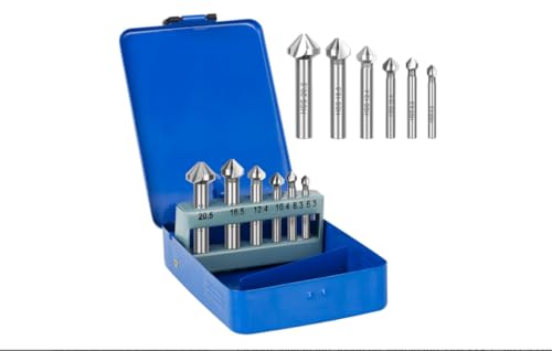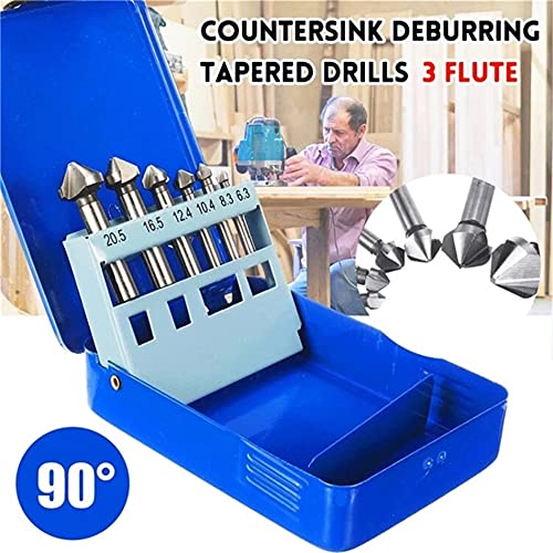 Countersink Drill Bits Set – HSS 90 Degree Counter Sinker Drill Bits Set, Metal Woodworking Chamfering Cutter, HSS Titanium Coated Chamfer Drill Bit 6.3-20.5mm, 6pcs(Blue Iron Box)
