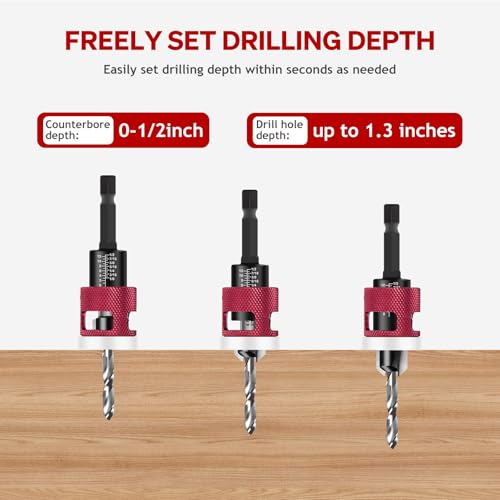 - Countersink with depth stop: non-penetrating, improves work efficiency, with a cross reference scale value to adjust the drill length for different screw lengths; easy to install on countersink/pilot drill with hex key. The countersink drill has a particularly smooth depth limiting ring that effectively reduces surface damage.