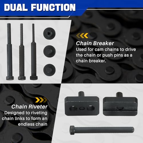 - Function: This motorcycle chain breaker tool is designed to rivet chain links to form an endless chain and is versatile enough to be used on cam chain to drive chains or as a chain breaker by pushing the pin out.