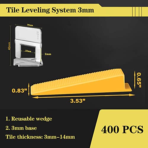 - Disposable Tile Clips: The leveling system 3 mm carries 300 clips to secure the tile position and prevent movement, use on Tiles 1/8" (3mm)up to 1/2"(12mm) thick, extremely fast & easy to install & remove. It can be used for Flooring and Walling.