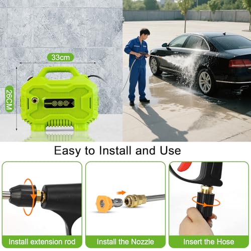 - 【3-in-1 Pressure Control】Switch between High/Medium/Low pressure modes for versatile cleaning – blast tough driveway stains with high pressure, then safely rinse delicate car paint with low pressure.