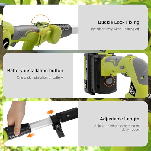 - Safety Switch and Ergonomic Design: This product has a safety switch design, which prevents dangerous operation by accidental touch. Comfortable handle and adjustable pole make you more convenient when doing gardening work.