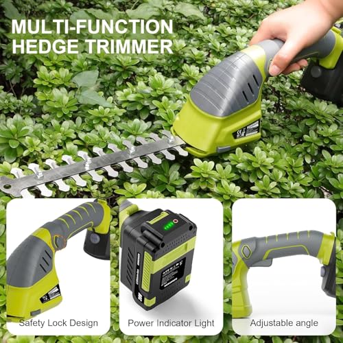 - Adjustable Cutter Head: The battery powered rechargeable hedge trimmers feature adjustable heads that allow you to freely adjust the trimming angle to suit the terrain and the height of the grass. The rechargeable hedge trimmer kit makes your mowing job easier and more efficient.