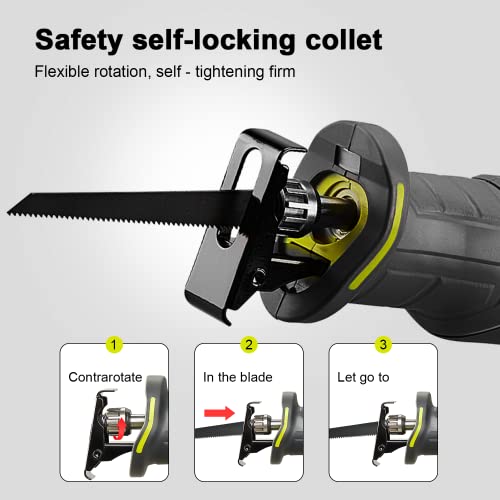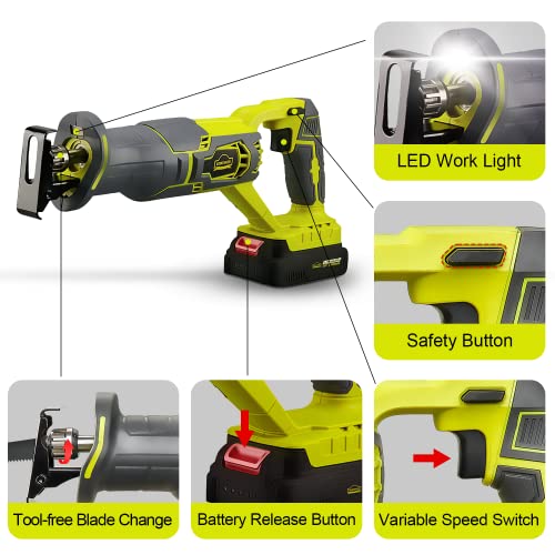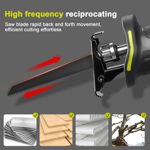 - Qualified Safe Operating:This reciprocating saw has developed tool/battery protection system for super safe operating. 3-in-1 protection from being overload, overheat, overdischarge. Helps to extend tool and battery life with durable performance.