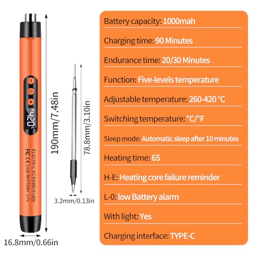 - 【Rapid Heating & Extended Use】:Reaches working temperature in 30 seconds. 1.5-hour charge provides 40+ minutes continuous operation for DIY projects and phone repairs.