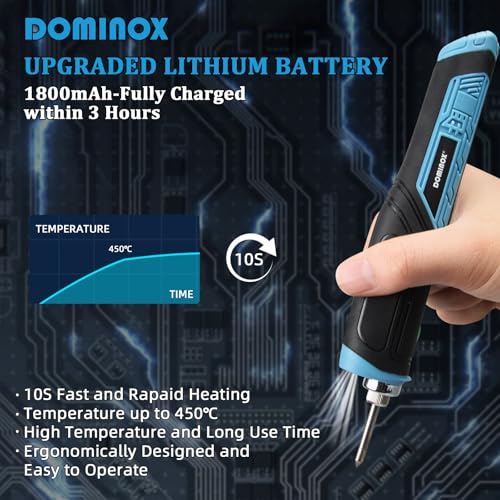 - High efficiency: Soldering gun only takes 5-10 seconds to reach 450 degree Celsius working heat after the torch is turned on.1500mAh battery can be fully charged in 3 hours and can be used 1000 times.
