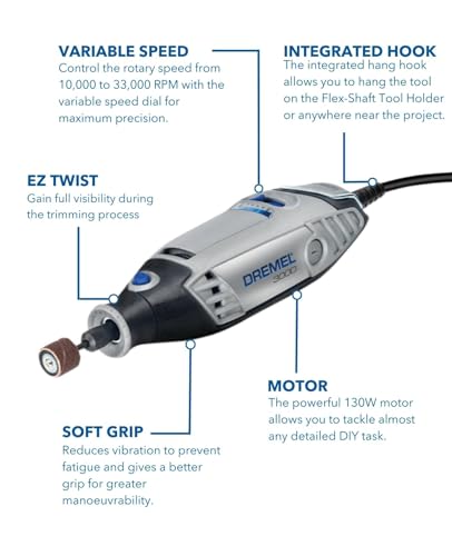 - VARIABLE SPEED: Control the rotary speed from 10.000 to 33.000 rpm with the variable speed dial for maximum precision