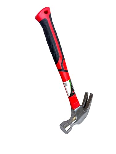 Easy Shopping® Claw Hammer with Anti-Slip Grip Solid Fiberglass Handle, 24oz Red and Black, Carbon Steel Head Nail Remover and Nail Puller Curved Claw Hammers for Carpenters & Electricians (1)