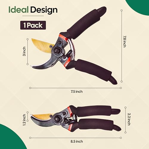 - Precision Titanium Steel Blades: Crafted with ultra-sharp titanium-coated steel, these pruning shears offer precise, clean cuts with minimal effort—perfect for live stems, branches, flowers, and vines.