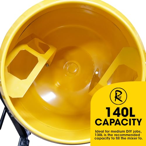 - Capacity – The drum speed is 26.6 turns per minute and the drum capacity is 140 litres (recommended filling capacity 130 Litres), making the job quicker and easier than hand-mixing the cement.
