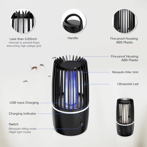 - 【Perfect for Indoor Outdoor Activities】The fly traps indoor for home use has 360°all round UV light and cover with area up to 120Sq. This fly trap can stand freely. It is not only perfect for your kitchen and bedroom, but also suits for your backyards, garden, RV. Portable and USB charging design also allows you take the insect killer with your BBQ, camping, picnic, pool party and other outdoor activities.