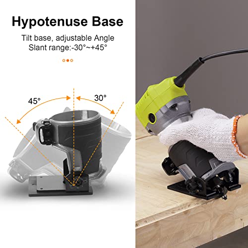 • 【3-in-1 Combo Kit】The Compact Router Tool comes in 3 bases: fixed base and plunge base, tilt base. A plunge base router is designed so that you can press the cutting depth and then lower ("plunge") the bit into the cut with the flat router base onto the material surface. They are necessary tools used in carpentry, DIY, and other home improvement projects.