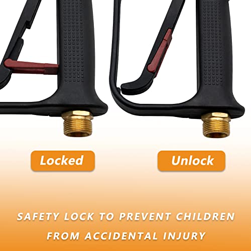 - Professional Cleaner Set:High Pressure Washer Trigger Spray Guns and 5 Spray Nozzles Tips.This high pressure washer gun with ergonomic design,more convenient and comfortable to use