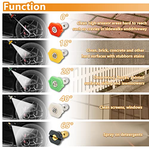 - Multiple Choices:Different angles spray nozzle tips meet your need in different situations, such as watering flowers and plants, washing car, washing fence, washing roof, and allows you to clean hard-to-reach areas quickly and easily